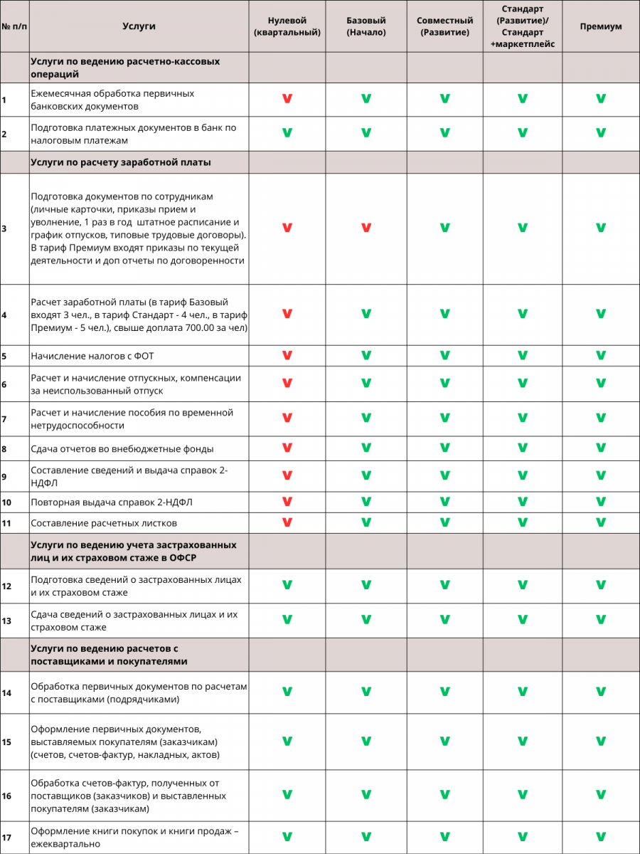 У нас 6 пакетов на выбор. В зависимости от вашего вида деятельности, системы налогообложения и объема операций.